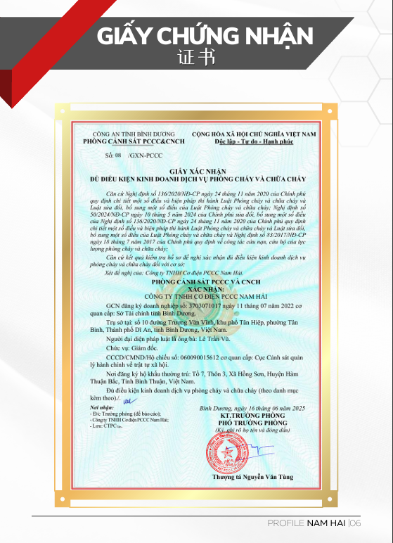 HỒ SƠ NĂNG LỰC | PCCC BÌNH DƯƠNG | PCCC NAM HẢI