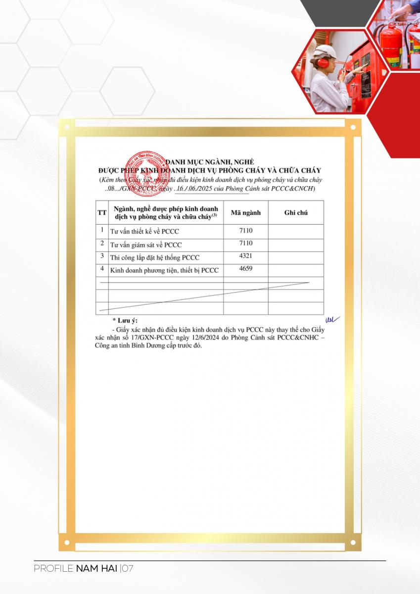 HỒ SƠ NĂNG LỰC | PCCC BÌNH DƯƠNG | PCCC NAM HẢI